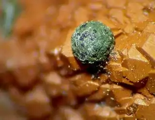 ![]() Natrodufrenita. Greifenstein Rocks, Ehrenfriedersdorf, Erzgebirge, Sajonia, Alemania. Campo visual, 3 mm. | ||