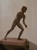 Le satyre prêt à s’élancer ha sido datado del último cuarto del siglo II a. C.. Tenía que estar equipado, entre sus manos, con un recipiente liviano, como una jarra o cualquier otro objeto para beber.[144]