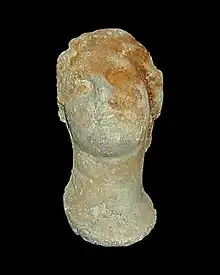 La estatuilla del hermafrodita también sirvió como antorcha, pero falta la parte superior.[145] Estas estatuillas servían como lámparas de aceite: una abertura hecha detrás de la cabeza permitía introducir el aceite y una tapa para cerrarla.[146] Las estatuillas fueron datadas alrededor del 100 a. C. y pertenecen a un tipo muy raro; únicamente existen cuatro ejemplares.[146]