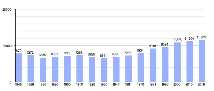 Todos los datos históricos relativos al actual municipio, el siguiente gráfico refleja su evolución demográfica, incluyendo municipios después de efectuada la fusión el 1 de enero de 1977.
