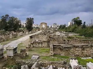 La necrópolis romano-bizantina, descubierta en 1962, está formada por unos 300 sarcófagos de piedra y mármol dispuestos a ambos lados de la avenida central. Pertenecen a las épocas de los imperios romano y bizantino[4][5] y están datados entre los siglos II y V. Se pueden distinguir sarcófagos romanos de mármol adornados con delicados bajorrelieves, otros en forma de capilla con nichos donde se alojaban las cenizas o el cuerpo del difunto, tumbas tan grandes como pequeñas villas u otras más modestas.[6] Un primer sarcófago fue exhumado en 1940 por soldados franceses destinados en Tiro, pero el conjunto de la necrópolis no fue descubierto hasta la década de 1960.[7]