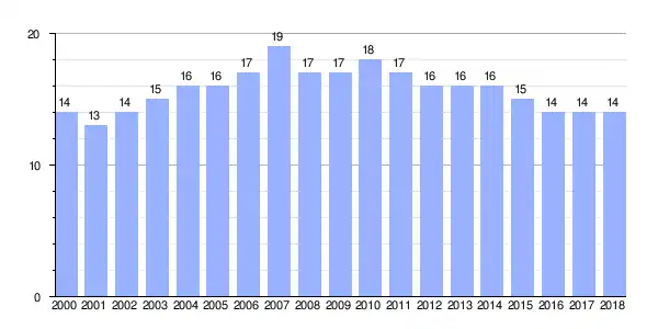 | Gráfica de evolución demográfica de Negrelle entre 2000 y 2018 |