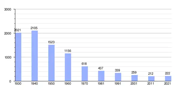 | Gráfica de evolución demográfica de Negueira de Muñiz[5] entre 1930 y 2021 |