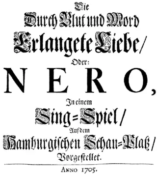 Después de haber logrado un éxito considerable con su primera ópera, Almira, Händel quiso replicar su éxito lo antes posible y al mes siguiente realizó Nero con el subtítulo Die durch Blut und Mord erlangte Liehe (Nerón o el amor obtenido con sangre y crimen).