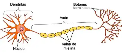 Cado axón procede de una neurona. La membrana celular que cubre el axón se llama axolema. La mayor parte de las fibras nerviosas están cubiertas por una vaina de mielina constituida por las células de Schwann.