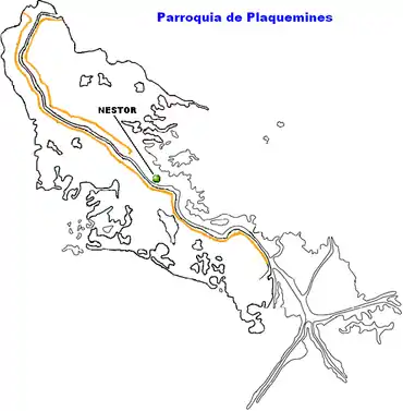 Localización de Nestor en el mapa de la Parroquia de Plaquemines.