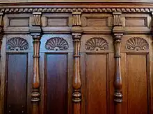 Las paredes internas fueron tratadas de este modo entre los siglos XVI y XVIII, aunque hacia el final de ese período, usualmente, el dado se aplanó y simplemente quedó definido por un riel a lo largo de la pared.[4]