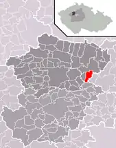 Se encuentra ubicada al noroeste de la región y de Praga, a poca distancia al norte del río Berounka —un afluente izquierdo del río Moldava—, y cerca de la frontera con la región de Ústí nad Labem.[1]