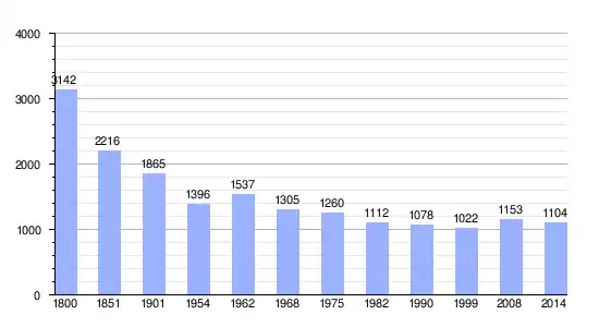Los datos demográficos contemplados en este gráfico de la comuna de Neuvéglise[4] se han cogido de 1800 a 1999 de la página francesa EHESS/Cassini, y los demás datos de la página del INSEE.[5]