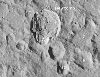 Por convención estos elementos son identificados en los mapas lunares poniendo la letra en el lado del punto medio del cráter que está más cerca de Newcomb.