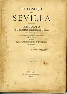 - El Concejo de Sevilla de Nicolás Tenorio Cerero. F. M. Pérez Carrera, C. de Bordons Alba. Serie: Historia y Geografía n.º 13. ISBN 84-472-0302-6