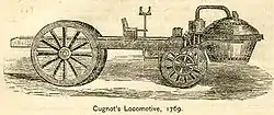Cugnot recibió instrucción como ingeniero militar. Realizó pruebas de modelos de vehículos impulsados por motores de vapor para el Ejército Francés, pensados para arrastrar cañones pesados, tarea que empezó en 1765.