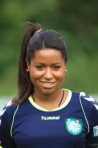 Su hermana gemela Sylvie también es futbolista. Jugaron juntas en el Bayern.[5]