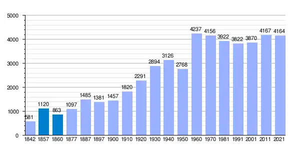 | Gráfica de evolución demográfica de Niebla[5] entre 1842 y 2021 |