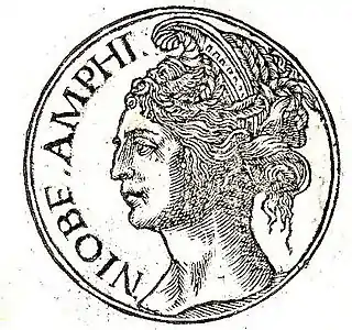 ![]() Níobe representada en el Promptuarii Iconum Insigniorum. | ||