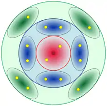 En la formación de compuestos existe una tendencia a coger, perder o compartir electrones entre los átomos y de esta forma parecerse a la configuración electrónica del gas noble más cercano (ocho electrones en la última capa salvo el helio que sólo tiene dos). Esta tendencia se denomina Regla del octeto.[66]