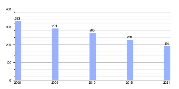 | Gráfica de evolución demográfica de Noceda (parroquia) entre 2000 y 2021 |