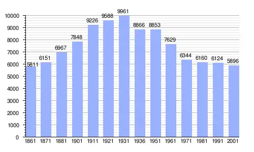 | Gráfica de evolución demográfica de Nocera Umbra entre 1861 y 2001 |