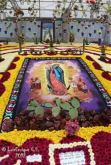 En el atrio de la basílica también se confeccionan diariamente alfombras florales con temas religiosos desde el inicio del mes de agosto, que son sustituidas cada tres días por otras nuevas que realizan afamados alfombristas de la región y de otras partes del país.