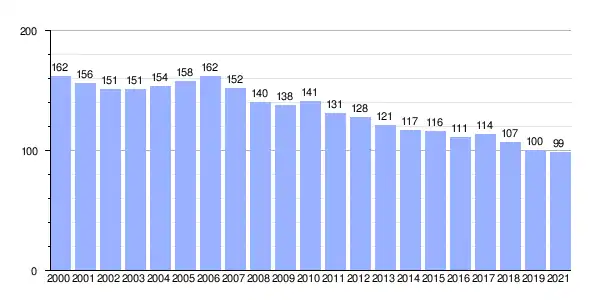 | Gráfica de evolución demográfica de Nogueira (parroquia) entre 2000 y 2021 |