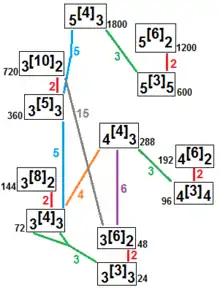 , se representa como [3[3,3]] con el superíndice [3,3] como la simetría de su diagrama de Coxeter de un tetraedro.