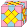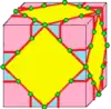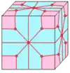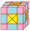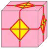 A partir de aquí, las operaciones se visualizan en semillas de cubo, y se dibujan en la superficie de ese cubo. Las caras azules cruzan los bordes de la semilla y las caras rosadas se encuentran sobre los vértices de la semilla. Existe cierta flexibilidad en la ubicación exacta de los vértices, especialmente con operadores quirales.