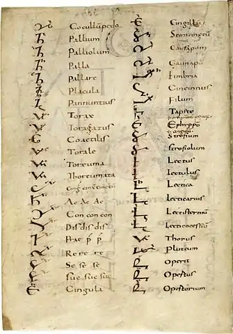 Glosario de notas tironianas del siglo VIII d. C., códice Casselanus.