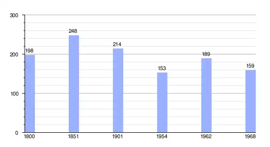 Los datos demográficos contemplados en este gráfico de la comuna de Notre-Dame-de-Fresnay[4] se han cogido de 1800 a 1968 de la página francesa EHESS/Cassini.