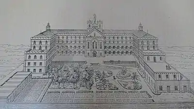 El edificio completo tenía trescientas habitaciones, dos capillas, salas de lectura, terrazas, comedores, un museo, una fábrica de cemento, una huerta y un corral.[7]