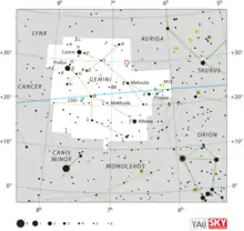La ubicación de nova DM Geminorum (encerrada en un círculo rojo)