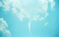 ![]() Una nube embudo aproximándose a tierra. | ||