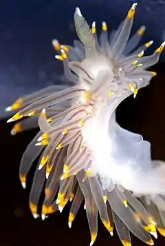 Los nudibranquios (Nudibranchia) son un orden de moluscos gasterópodos sin concha, de la infraclase de los opistobranquios, comúnmente llamados babosas de mar. Su nombre científico significa "con las branquias al desnudo". Muestran colores muy variados y llamativos y formas sinuosas.