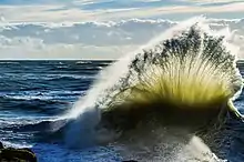 Nueva Aquitania cuenta con una gran fachada marítima de casi 720 km[17] abierta al océano Atlántico, desde la Reserva Natural Nacional de la Bahía de Aiguillon y el estuario del Sèvre Niortaise (al norte de Charron) hasta el estuario del Bidasoa (al sur de Hendaya) e incluye las islas del archipiélago de Charente (islas de Ré, Oléron, Aix y Madame) y la amplia muesca en la cuenca de Arcachón. Este territorio variado es el dominio de la ostricultura (ostras de Marennes-Oléron y de la bahía de Arcachon), de la mitilicultura (mejillones de la bahía del Aiguillon), y del turismo, materializado por la presencia de famosos balnearios como Arcachón (costa de Argent), Biárriz (costa Vasca) o Royan (costa de Beauté). Su parte norte (costas charentesas y estuario de la Gironda) está incluido en el Parque natural marino de los pertuis charentais y del estuario de Gironda, el mayor parque marino francés.
