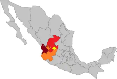 - Provincia de Nueva Galicia; Nayarit, Jalisco, Aguascalientes, Colima.[3][4][5][6]