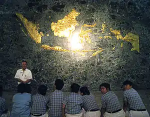 Un mapa dorado de Indonesia en el Salón de la Independencia, Monumento Nacional de Indonesia, Yakarta. También se incluyen Brunéi, Timor Oriental y los estados malayos de Sabah y Sarawak.