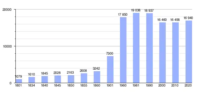 | Gráfica de evolución de Nykøbing Falster entre 1801 y 2020 |