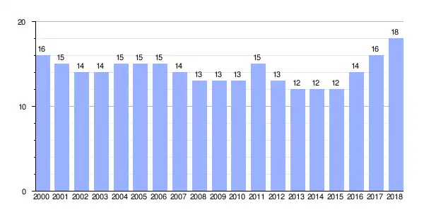 | Gráfica de evolución demográfica de O Vilar entre 2000 y 2018 |