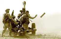 Soldados estadounidenses disparando un M119 cerca del Aeropuerto de Kandahar, Afganistán.