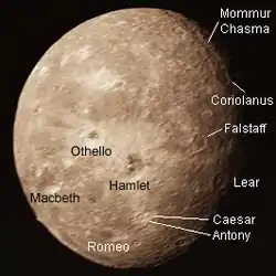 La lista de los principales accidentes geológicos de Oberón es la siguiente:[27]