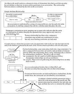 G. M. Nijssen hizo contribuciones fundamentales introduciendo la notación de "caja de círculo" para tipos de objetos y roles, y formulando la primera versión del procedimiento de diseño del esquema conceptual. Robert Meersman amplió el enfoque añadiendo subtipado e introduciendo el primer lenguaje de consulta verdaderamente conceptual.
