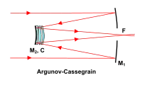 Hay varios diseños de telescopios que aprovechan la colocación de una o más lentes de diámetro completo (comúnmente llamadas " placa correctora ") frente a un espejo primario esférico. Estos diseños aprovechan que todas las superficies son "esféricamente simétricas"[5] y se inventaron originalmente como modificaciones de los sistemas ópticos basados en espejos ( telescopios reflectores ) para permitirles tener un plano de imagen relativamente libre de coma o astigmatismo para que pudieran usarse como astrograficocámaras. Funcionan combinando la capacidad de un espejo esférico para reflejar la luz hacia el mismo punto con una lente grande en la parte delantera del sistema (un corrector) que dobla ligeramente la luz entrante, lo que permite que el espejo esférico refleje objetos en el infinito . Algunos de estos diseños se han adaptado para crear cassegrains catadióptricos compactos y de longitud focal larga .