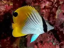Un ocelo es un tipo de coloración en los seres vivos que consta de una o varias manchas redondas y multicolores con apariencia de ojo. Es un fenómeno común en la coloración de los animales que presentan comúnmente algunas especies de peces, mariposas, reptiles y aves.[1] Su función biológica se asocia con el mimetismo.