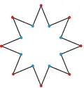Una estrella octogonal puede tener el aspecto de un hexadecágono cóncavo, con la geometría de intersección interna eliminada. También se puede diseccionar por líneas radiales.