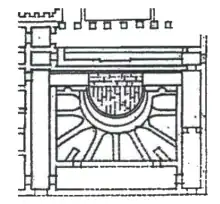 La cávea rodea el lado oriental de la orchestra y tenía entre 300 y 350 asientos para los espectadores [3][4] dispuestos en forma de escalón para una mejor visibilidad. Una estructura abovedada con numerosos espacios abovedados en forma de cono truncado sostenía la cávea. Una estructura similar se utilizó para la construcción de la zona de espectadores del Coliseo de Roma. La cávea está separada de la skene mediante parodoi.[2]