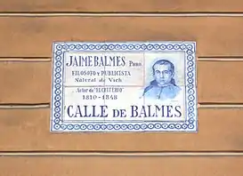 Influido por la historiografía romántica, Balaguer introdujo numerosos nombres de signo catalanista, abriendo la puerta para numerosas poblaciones catalanas que siguieron el mismo ejemplo.[111] Creó así diversas calles con nombres de territorios vinculados con la Corona de Aragón: Valencia, Mallorca, Aragón, Provenza, Rosellón, Nápoles, Calabria, Córcega, Sicilia y Cerdeña; instituciones como las Cortes Catalanas, la Diputación, el Parlamento o el Consejo de Ciento; personajes de la política, las letras o las artes catalanas: Balmes, Aribau, Muntaner, Casanova, Pau Claris, Roger de Flor, Villarroel, Roger de Lauria, Conde Borrell, Conde de Urgel, Entenza, Ausiàs March, Llull, Llança, Alí Bey, Manso, Pallars, Pujades, Rocafort, Tamarit, Viladomat, Vilanova o Vilamarí; batallas y hechos históricos, como Bailén, Lepanto, Bruc o Caspe.[112] También dedicó calles a la Industria, la Marina y el Comercio, y a las ciudades catalanas de Gerona y Tarragona.[113] De su propuesta inicial hubo alguna modificación, como la calle de la Universidad, que en 1916 fue reconvertida en Enrique Granados a la muerte del compositor; y algunos nombres que finalmente no se materializaron, como Atenas, Desclot, Barceló, Capmany, La Coronela y Llobregat.[114]