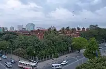 El edificio, de estilo victoriano, está construido a partir de ladrillos rojos y amarillos en una estructura en forma de U. La construcción empezó a finales del siglo XIX.[2] El edificio central se completó en 1902, mientras que las alas este y oeste se terminaron de construir en 1905, con un coste de 2,5 millones de kyats.