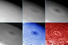 - «NASA Sees into the Eye of a Monster Storm on Saturn». NASA. 9 de noviembre de 2006. Archivado desde el original el 5 de octubre de 2011. Consultado el 10 de noviembre de 2006.