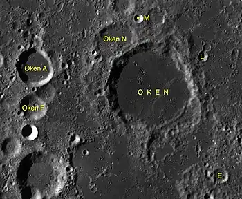 Por convención estos elementos son identificados en los mapas lunares poniendo la letra en el lado del punto medio del cráter que está más cercano a Oken.