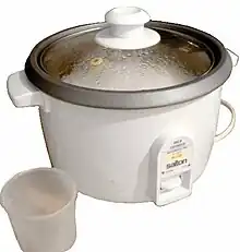 La preparación del arroz ha sido tradicionalmente un proceso de cocción que exigía atención para asegurar que el arroz se hacía adecuadamente. Las ollas arroceras[1] simplifican el proceso controlando automáticamente el calor y el tiempo de cocción, y liberando al mismo tiempo un fuego en la cocina. Aunque la olla arrocera no acelera necesariamente el proceso de cocción, la implicación del cocinero se reduce a simplemente corregir la cantidad de agua. Una vez que la olla se enciende, el arroz se cocina sin más atención.