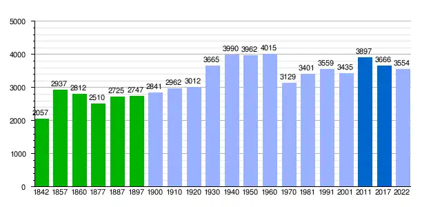 Población de derecho (1842-1897, excepto 1857 y 1860 que es población de hecho) según los censos de población del siglo XIX.[6] Población de derecho (1900-1991) o población residente (2001) según los censos de población del INE.[6] Población según el padrón municipal de 2011[7] y de 2017 del INE. |